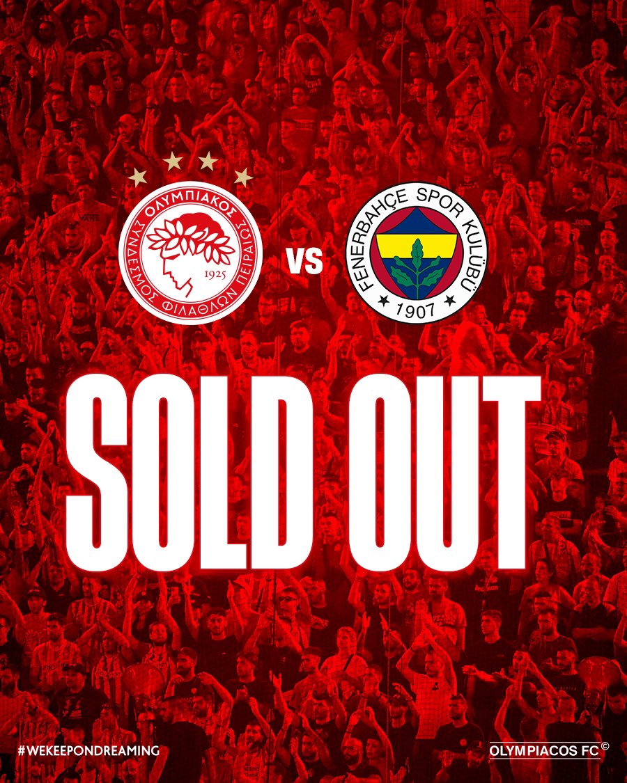 Ο Ολυμπιακός ανακοίνωσε ότι εξαντλήθηκαν τα εισιτήρια για την αναμέτρηση με την Φενέρμπαχτσε (11/4) στο «Γ. Καραϊσκάκης»