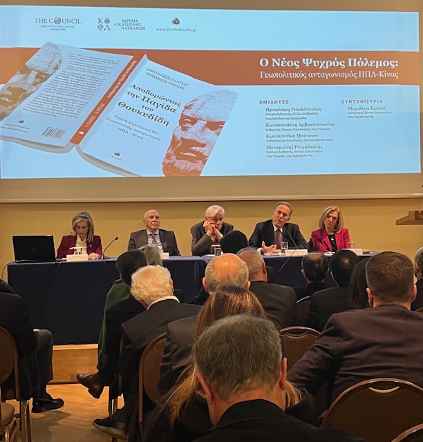 Το Ίδρυμα Αικατερίνης Λασκαρίδη και το Πανεπιστήμιου του Πειραιά διοργανωσαν , εχθες πεμπτη 8/2 στην Ιστορική Βιβλιοθήκη του Ιδρύματος , τη παρουσίαση του νέου βιβλίου του Αθανάσιου Πλατιά και του Βασίλη Τρίγκα : ' Αποδομώντας την παγίδα του Θουκυδίδη ' - Υψηλή στρατηγική και γεωπολιτικό ανταγωνισμός ΗΠΑ-Κίνας- από τις εκδόσεις Δίαυλος .